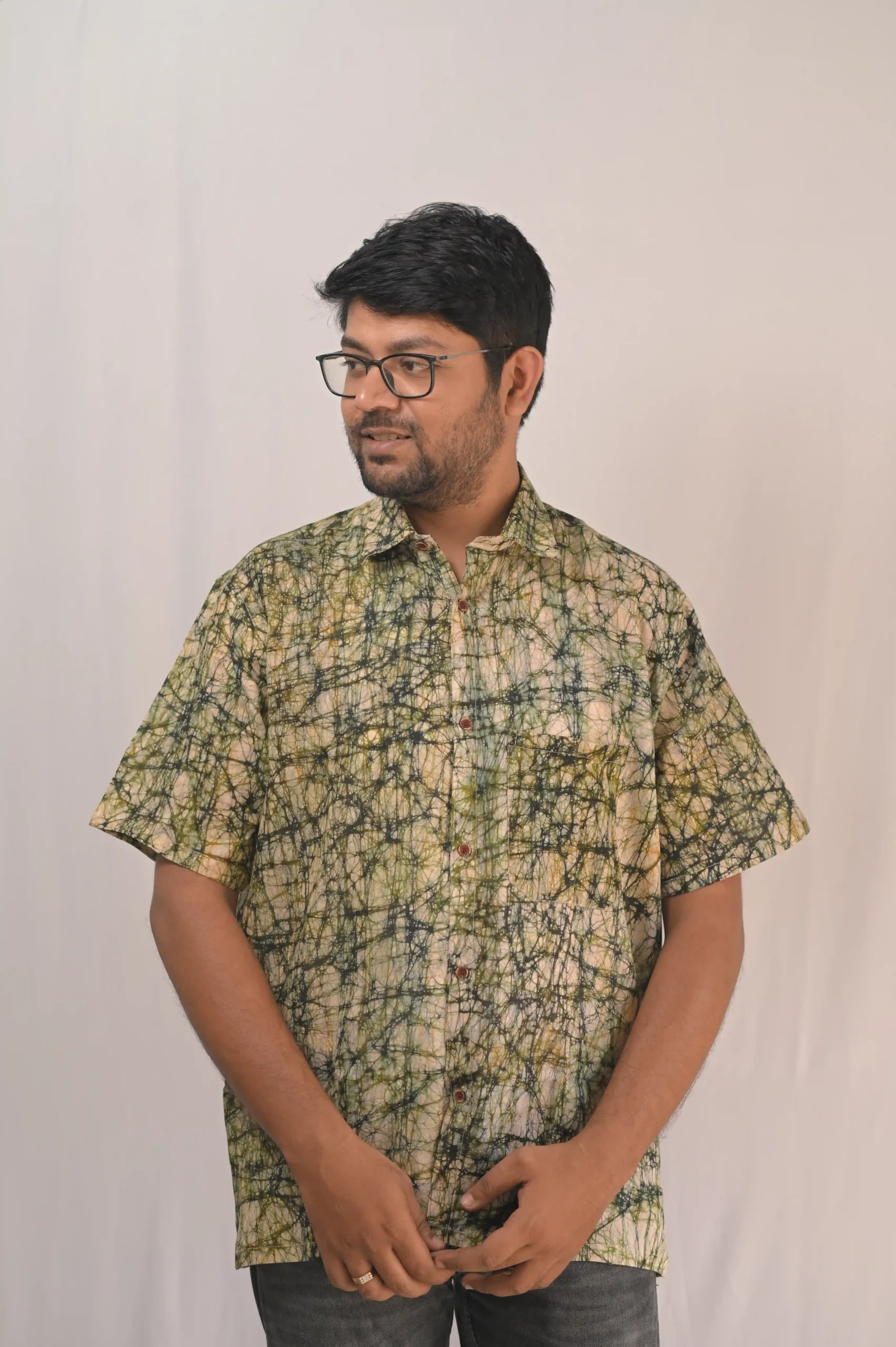Embrace effortless summer style with our Moss Green Hand Batik Print Shirt. Featuring a comfortable loose fit and crafted from 100% breathable pure cotton. This handcrafted, sustainable men’s shirt is perfect for beach vacations, resort wear, and relaxed weekend outings.