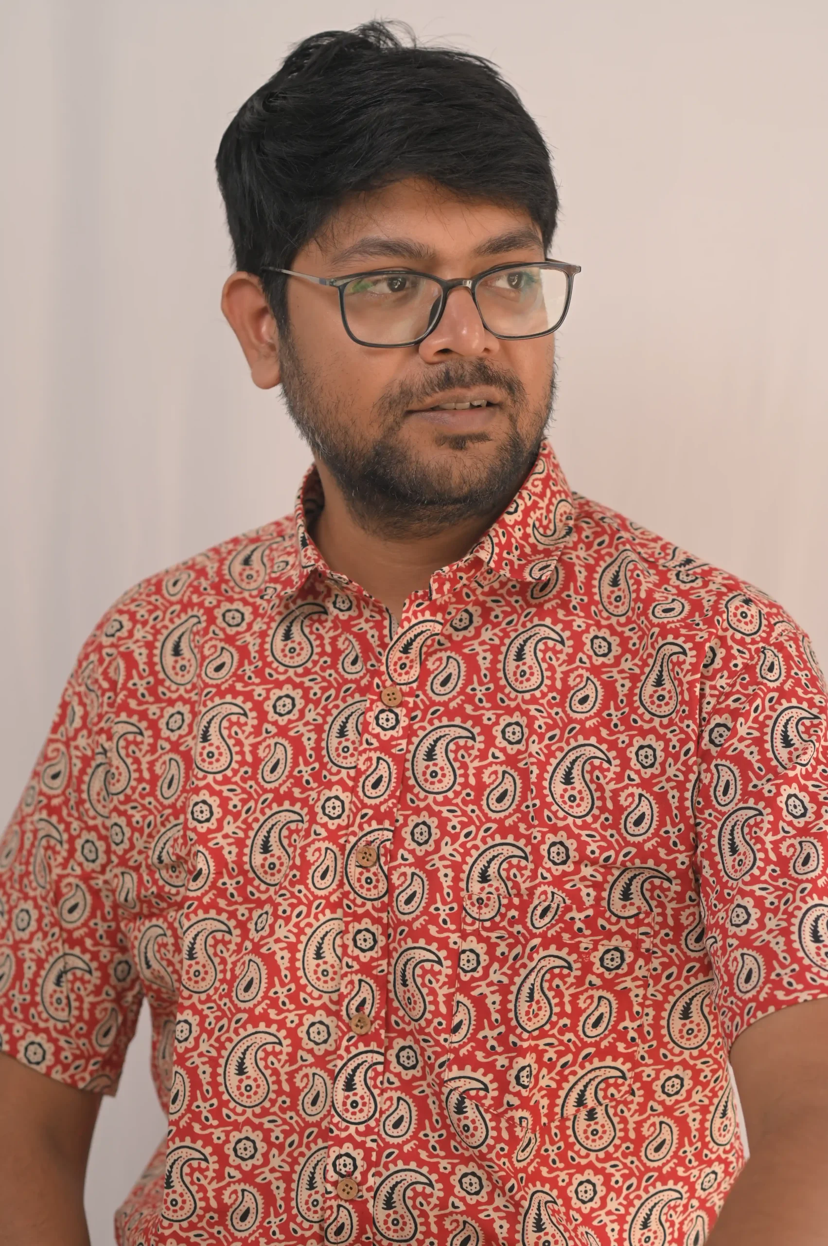 Add a splash of vibrant energy to your wardrobe with this Rust Red Paisley Hand-Block Printed Shirt. Featuring a spirited combination of traditional paisley “Buta” and floral “Butti” motifs, this shirt is a celebration of heritage craft reimagined for the contemporary man.