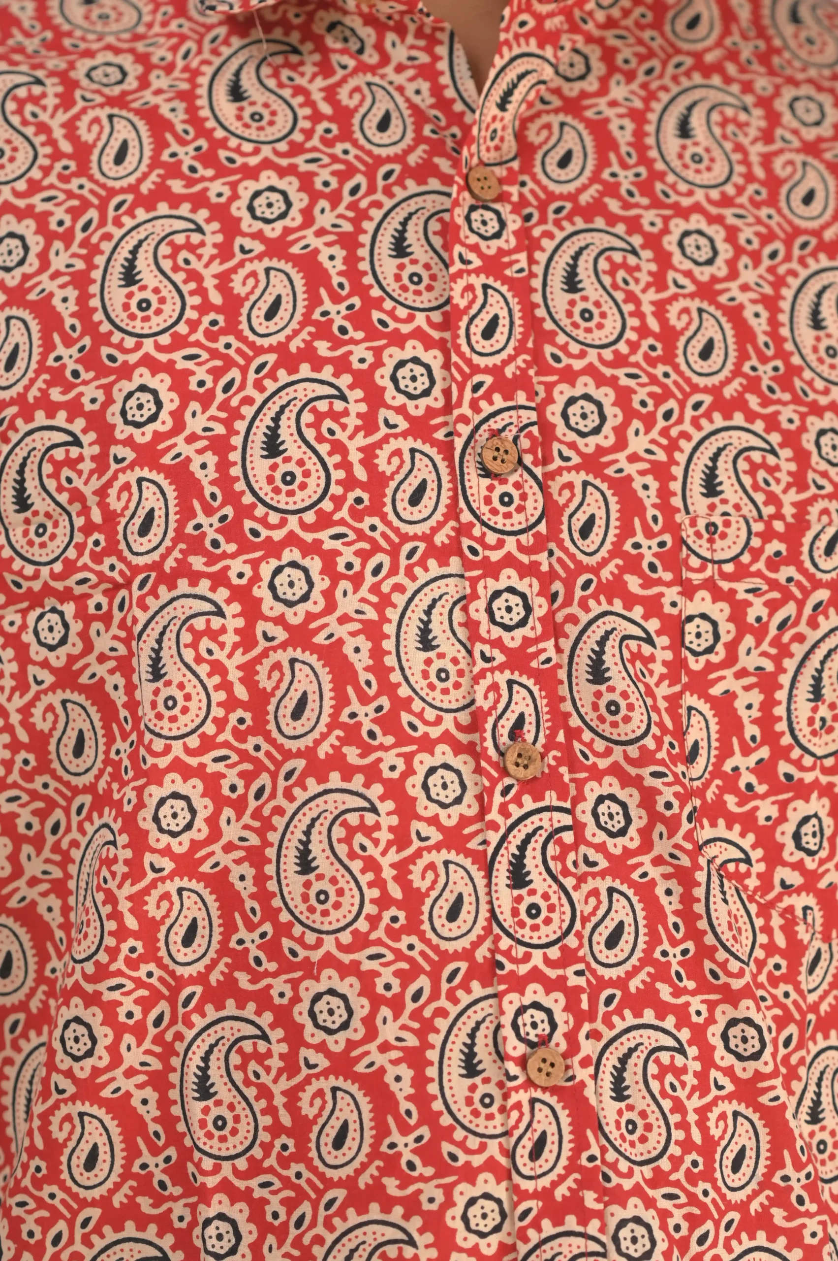 Be the first to review “Men’s Rust Red Paisley Hand-Block Print Cotton Shirt”